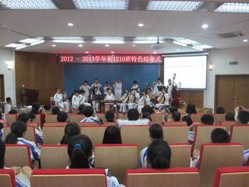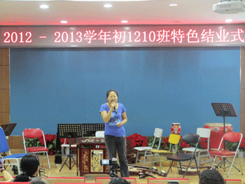 7月12日上午,bg真人娱乐初12级艺术特长班(初1210班)开展主题为“多彩民族风、和谐中华情”特色结业式展示活动,初一年级组长邱晓云、学生会指导教师刘露、班主任徐蓉和周若卉、初12级各班学生代表及10班的学生家长出席观摩。
