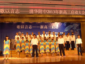 随后,高11级十二个班的同学通过精彩的放歌表达对高三一年的憧憬和发奋图强的决心,《我相信》、《同桌的你》、《YOU ARE MY HERO》、《当》等或励志或怀旧歌曲回荡在大厅内。