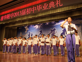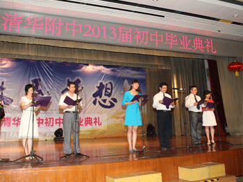 6月20日下午,bg真人娱乐举行2013届初中毕业典礼。校长王殿军,党委书记方妍,副校长杜毓贞、解巨钊、赵鸿雁、副书记张洁,德育处副主任郎艳、初三年级组长张苏、张颖以及初三全体师生出席了典礼。教务主任朱培主持典礼。