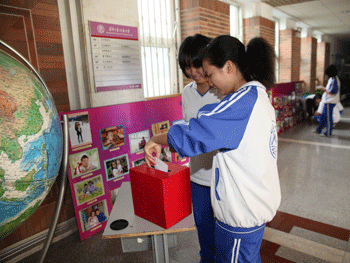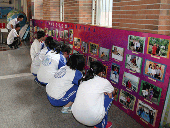 教工亲子摄影展吸引了同学们观看 同学将评选最美之家选票投入票箱