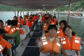 本次活动分为室外拓展和室内心理游戏两个主要环节。室外拓展中,同学们齐心协力制作和享受美食、乘快艇领略峡谷湖光长城美景,分组自由活动跨越峡谷速降,真人CS对决,活动全程真是惊险刺激,放松身心;室内心理游戏环节,由心理专家昊眀爸爸带大家做团队心理游戏。游戏分三组,两组学生和一组家长,在游戏中同学们懂得了团队协作与相互信任的重要性。