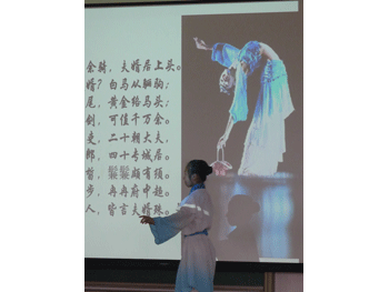 第二届国学诗歌朗诵活动,短短40分钟却充满了诗情画意:本次活动主题是诗歌朗诵,可谓“诗情”;活动现场六张制作精美的宣传海报,那是“画意”。而及葳老师的总结陈词,借助了林语堂对中国诗歌和西方宗教的对比的学说,让学生们更深刻感悟到了中国是诗歌的国度。活动得到了邱晓云老师的大力支持与肯定。在活动结束之际,她情不自吟唱一曲《在水一方》,为活动画上一个诗意的惊叹号。