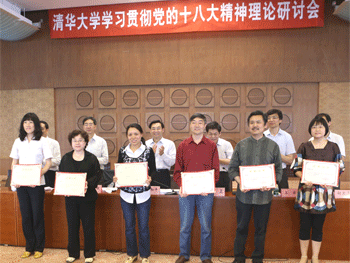 5月21日下午,清华大学学习贯彻党的十八大精神理论研讨会在主楼接待大厅召开。会上,为“坚持和发展中国特色社会主义,加快建设世界一流大学”主题征文活动中获奖的单位和教师进行了颁奖。bg真人试玩教师王田、周若卉获征文二等奖;朱莹获三等奖;bg真人试玩党委获优秀组织奖。