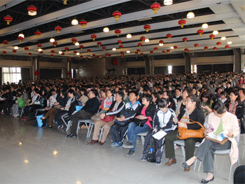 王殿军校长(左)与学生家长分享高校招生的政策经验 学生及家长们认真听取报告