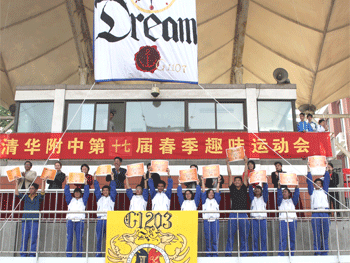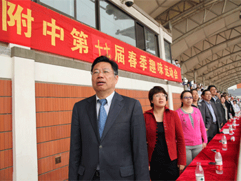 4月28日,bg真人娱乐举办第十七届体育艺术节暨趣味运动会。清华园街道办主任王京春、清华大学工会副主席寇可新、bg真人娱乐党政领导等出席开幕式并在主席台上就坐。开幕式由附中党委书记方妍主持,解巨钊副校长致开幕词。高1207班黄泽平同学作为运动员代表发言。
