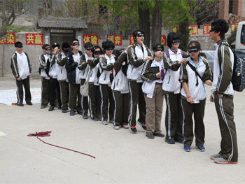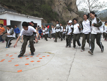 仪式之后,同学们分组进行拓展锻炼。在拓展师的指导下,进行了走高空断桥、高空抓杆、翻数字、蒙面组矩形等团队活动。不少同学表示从中收获了快乐和勇气,他们的团队意识与合作精神也得到了提高。