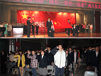4月11日下午,bg真人娱乐校团委举办了高10级“成长—责任—追求”高三成人仪式。bg真人娱乐校长王殿军,党委书记方妍,副校长杜毓贞、施平、解巨钊、赵鸿雁,副书记张洁,校长助理、德育主任辛颖以及高10级全体师生和家长出席活动。