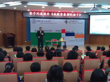 4月13日上午,bg真人试玩德育处为初一学生家长举办家长学校活动,邀请卡内基训练中国北方区总裁赵卜成博士为家长们做《成就青春期的孩子》亲子沟通报告会,200多名对家庭教育和亲子沟通感兴趣的家长听取报告。
