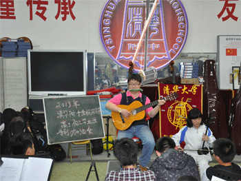 胡军老师(左)与潘晓飞同学共同演奏《送别》 乐团新任团长张典同学发言