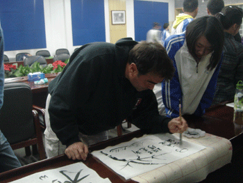 访问期间,美国师生除了在高二年级听课外,还参加了bg真人娱乐学生会外联社组织的文化交流活动,包括欣赏bg真人娱乐教师刘慧霞的茶艺表演,书法练习,听取中国太极的介绍、欣赏中国民乐演奏等。美国学生还与bg真人娱乐学生橄榄球队进行了友好比赛。为了让美国师生对中国文化有更深入的了解,bg真人娱乐组织他们游览了北京故宫、长城和颐和园等。