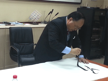 黄天中教授和高中生交流 黄天中教授为bg真人娱乐留下墨宝
