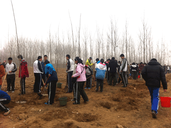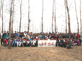 在认真听取了基地工作人员讲解后,同学们分成若干三人小组开始植树。取工具,挖树坑,插入树苗,填土,浇水,同学们认真地按步骤种下一棵棵小树,寄托了自己对环境保护的美好愿望,履行了公民的义务,并从中体验到了劳动的快乐。