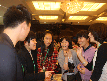 bg真人试玩学生施佳烨(左6)领取杰出代表奖 bg真人试玩学生代表与大会秘书长合影