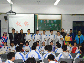 联合中队会之后,高明理事长为全年级14个班的获奖同学颁奖,其他12个班级的民族知识竞赛活动已于上周四进行。颁奖后,高明先生代表基金会发表简短讲话,希望同学们多了解各民族文化民族,感受祖国大家庭的美好。