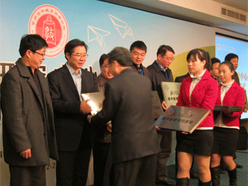 王殿军校长在论坛上发言 王殿军校长(左2)接受“北京师范大学高中教育研究基地”校铜牌