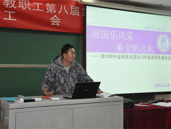 家长会由胡军主任主持,他首先向在座的家长和同学回顾了bg真人娱乐金帆民乐团的发展历史和所取得的各项成绩,同时也提出了此次美国比赛及在美国著名学府——斯坦福音乐厅与清华附小一起举办专场音乐会的设想及排练要求。并说明了此次比赛和音乐会的意义,此次赴美比赛不但是北京市金帆团《金帆团评定办法》中的要求和任务,同时也是学生思想教育的需求,是学生素质教育的需求。乐团制定和安排了此次活动的课程,希望通过此次比赛和考察,争取让同学们的演奏技术有所提高,争取在爱国、爱党的精神层面上,也能够上一个台阶。