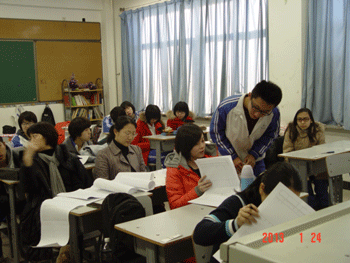 学生正在阐述开题报告的内容 指导教师现场对学生的课题进行指导