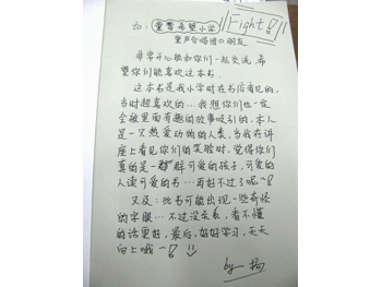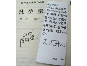 学生在书扉页上写下温暖的赠言 学生赠送自己制作的温馨书签