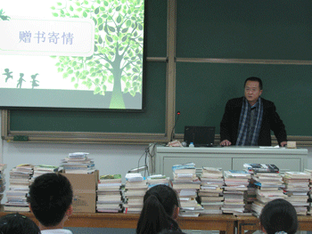 最后,全体与会人员合影留念。仪式后,各班支委一起动手,给书籍打包。很多同学从来没做过这样的活,绳子扎不好,扎上又散了,但是大家都非常努力,非常认真,最后同学们把书打包好之后把书一直抱到校门口的车上。各班支委的质朴和善良给老师和来宾留下深刻印象。