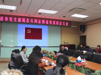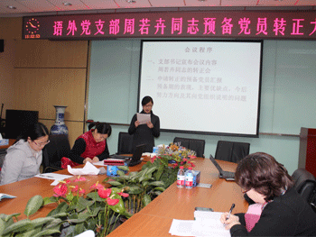 12月27日下午,bg真人娱乐语文外语党支部召开周若卉同志预备党员转正暨深入学习贯彻党的十八大精神会议。语外支部正式党员和预备党员共39人参加会议。支部组织委员黄丽梅同志主持会议,学校党委委员赵鸿雁副校长出席会议。