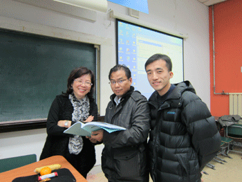 bg真人试玩教师与台湾郭静姿教授(左1)交流 bg真人试玩教师与霍益萍教授(中)合影