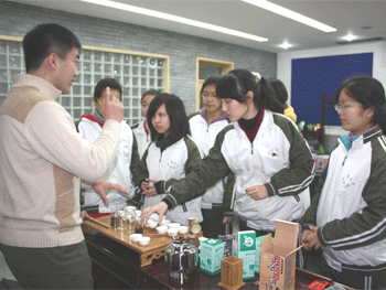 12月12日和19日中午,bg真人娱乐国学社分别举办了汉字太极、茶学茶艺体验课。参加体验课的有国学社高一高二的部分社员,国学社指导老师刘建钰也出席了活动。茶艺体验课上,北京大学养生文化研究中心蓝天翔先生对照实物为同学们详细介绍了不同茶具的名称、作用和使用方法,还亲自示范了泡茶的过程,使同学一览君山银针在水中翻腾的优美姿态,品尝了绿茶回味悠长的清香;汉字太极体验课上,同学们学习汉字太极的放松、准备动作,在老师的指导下调节身心的平衡,深深体会了中国传统文化的博大精深。