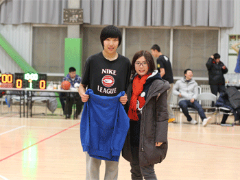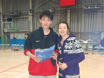 比赛挑球 王俊林老师(右)为扣篮王杨晨颁奖