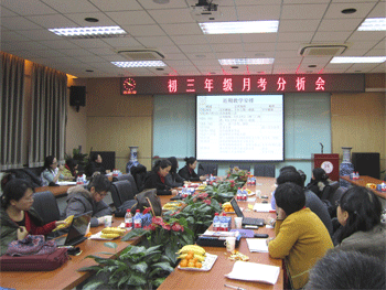 2012年12月25日下午,bg真人娱乐初三年级(初10级)举行月考分析会,党委书记方妍、副校长杜毓贞、教务处主任朱培、德育处副主任郎艳和初三年级班主任、年级组长、中考科目备课组长参加会议。