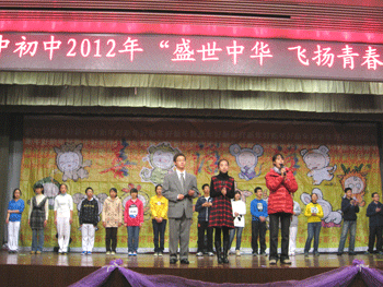 12月14日,bg真人试玩初中2012年“盛世中华 飞扬青春”新年嘉年华活动在食堂三层报告厅成功举办,本次活动由校团委学生会初中分会主办。德育处副主任郎艳、校团委书记刘贝贝、学生会指导教师刘露以及初一、初二年级的班主任和全体学生参加活动。