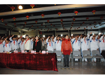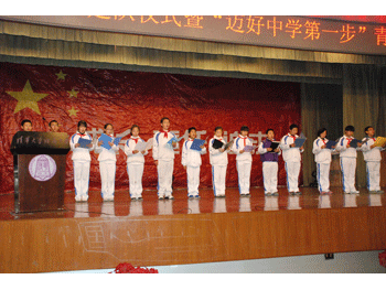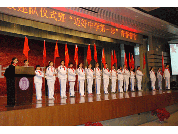 会上,校团委书记刘贝贝任命并宣布各中队辅导员老师以及各中队和联合中队的中队委名单,并向各中队授中队旗。各中队委向到场领导与辅导员老师献上鲜艳的红领巾,表达了同学们对老师的感谢与敬意。少先队员代表、联合中队长冷延鹏在发言中回忆了进校三个月来开展的丰富多彩的活动,呼吁同学们尽快适应中学生活,成功迈好中学第一步。随后,德育处副主任郎艳发言,希望同学们要争做一名好少年,除了好好学习培养过硬本领和优良品德,还要锻炼强健的体魄,将来为祖国做出贡献。