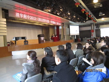 教务处朱培主任出席全体大会并发言,向家长们详细分析了期中考试的成绩和学校关于教学的各项安排,向家长们介绍了初三年级不同阶段的任务和要求,指出了家长需要关注的问题。年级组长张苏向家长们介绍了年级组本学期的工作要点和学生的整体状况,建议家长配合学校关注学生的内在学习动力的激发,调整心态,做好后勤工作。随后,家长们分别进入各班参加班级家长会,听取任课教师介绍班级整体情况,并就自己孩子的特点与班主任或任课教师进行个别交流。