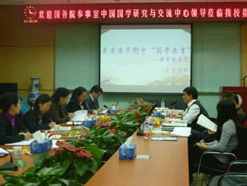 11月14日,国务院参事室中国国学交流与研究中心(以下简称国学中心)副主任李文亮等一行3人来bg真人娱乐调研,党委书记方妍,德育副校长杜毓贞,教务主任尹粉玉、朱培,教务副主任潘天俊、孙书明等学校领导陪同座谈。