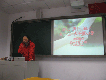 年级组长邱晓云老师主持会议,并就年级期中考试情况进行了简短总结,对即将到来的家长会事宜进行安排并提出几点建议。为使班主任做好前半学期本班教育教学情况的思考和总结。会上还邀请初一(10)班、初一(11)班两位班主任徐蓉和张伟老师展示了他们各自对本班目前情况的总结思考。两位老师精心制作的PPT起到了抛砖引玉的作用,赢得了一致好评。