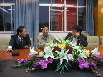 姜兴来老师在讲课 姜兴来老师(右一)和专家进行座谈