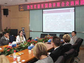座谈会结束后,美国教育联合会的来宾们在bg真人娱乐领导的陪同下参观了部分课堂教学情况,并游览了校园。