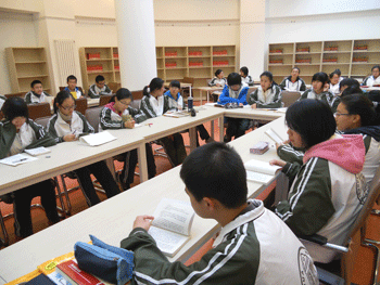 11月1日下午,bg真人试玩高一(高12级)文科试验班阅读课启用了学校刚建设完毕的圆厅阅览室。