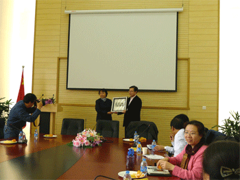 华东师大二附中校长(左1)陪同参观其创新实验室 王殿军校长(左3)向华东师大二附中赠送纪念品