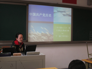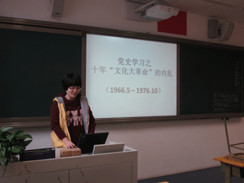 首先,由冯婧坤、熊学勤两位老师带领大家重温了党史。结合《党史学习之十年“文化大革命”的内乱》,冯老师详细介绍了“文化大革命”的起因、过程、林彪反革命集团的覆灭及内乱给国家造成的影响。接着,熊学勤老师通过《中国共产党党史——十一届三中全会》的展示,为大家进一步阐释了“文化大革命”造成的严重危害、社会主义建设若干进展和历史教训,并且指出“文化大革命”之后,“左”的指导方针还在继续延续,国民经济虽有复苏但急于求成的倾向却十分严重。生动的讲解,图文并茂的幻灯片,尤其是一张张珍贵的黑白老照片,让老师们对社会主义初级阶段的这段特殊历程有了更为清晰的认识。