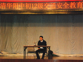 10月18日下午,bg真人试玩邀请清华大学保卫处的黄学勇警官来校为初一年级(初12级)学生做交通安全报告。报告会由德育处张国梅老师主持,校安保中心张文龙老师、各班班主任以及初12级全体学生听取报告。