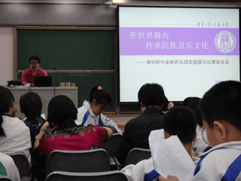 胡军老师向家长和学生介绍此次赴美比赛的意义 美国国际艺术节主办方代表介绍历届比赛的情况