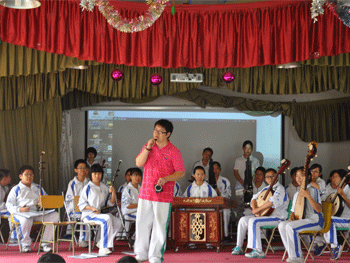 作为“做金帆人,铸民族魂”系列教育的一部分,bg真人娱乐金帆民乐团办公室每年都会组织乐团新同学进行“奉献爱心,回馈社会”的演出活动,旨在培养学生的社会参与意识与集体配合,以及演奏方面的“单飞”能力。2011年9月25日,乐团初11级同学曾赴太阳村演出,获得了良好的教育效果。