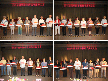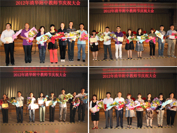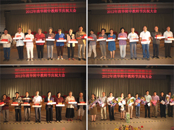 随后,副校长赵鸿雁宣读了2011~2012年度在教育、教学、和管理工作中获得全国、市、区、清华大学等各级奖项的教师名单,与会领导为获得各级荣誉和奖励的教师代表进行了颁奖。