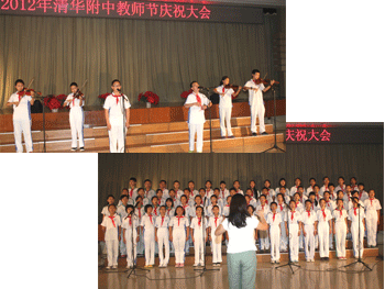 徐海鹰老师代表全体教师发表了题为“探索和实践乃教师之本”的教师节感言,表示要追随那些曾经创造过附中辉煌的老一辈教师的足迹,在基础教育大洋中,以务实高效的作风为舵,以探索和实践为浆,以迈入世界名校俱乐部的信念为帆,齐心协力,再创辉煌!