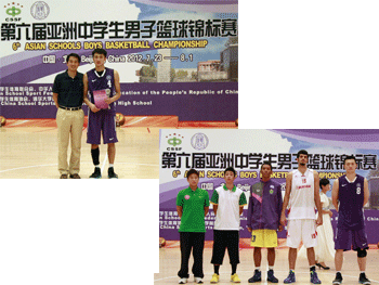 bg真人试玩男篮获得亚军后合影 侯子宇(左上,右)获得得分王;刘泽世 (右下,右1)获得最佳大前锋