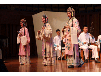 胡军老师指挥乐团演奏 北昆著名演员王瑾(中)带领学生田屾(右)徐镝清(左)演唱