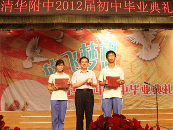 初三教师表演节目《花样年华,树样人生》 王殿军校长为各班学生代表颁发毕业证书