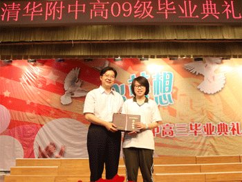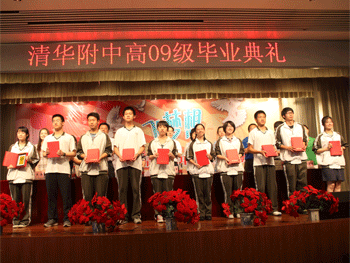 典礼在全体人员庄严的国歌声中开始。“大会表彰”环节中,杜毓贞副校长、方妍书记分别宣读了高09级获得市区校级先进集体、优秀个人以及市级以上学科、体育竞赛等各类奖项获奖者名单,并由校领导为先进集体和优秀个人颁奖。随后,全年级10个班的学生代表一一上台,接受王殿军校长颁发毕业证书并合影留念。