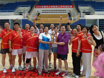 6月14日,2012年清华大学教职工羽毛球团体比赛决赛在清华大学综合体育馆举行,对阵双方为bg真人娱乐队和清华控股队。bg真人娱乐队在校长王殿军的率领下,顽强拼搏,经过三个小时的奋战,最终以3:2战胜清华控股队夺得冠军。