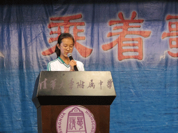 9位选手分别给观众们带来了独一无二的视觉及视听盛宴,初1112班杨佳宁同学的演讲《母爱永恒》、初1110班杜心邈同学的演讲《动漫是什么?能吃么?》、初1106班李怡然同学的演讲《Justin Bieber》、初1104班胡泰阁同学的演讲《我们吃的东西安全吗》、初1010班陈可馨同学的演讲《中国非物质文化遗产保护——我们共同的责任》、初1011班董天昊同学的演讲《口技的奥秘》、初1108班李梓楠同学的演讲《百慕大三角》、初1113班杨明峻同学的演讲《iPad商标权纠纷》、初1106班陆雨佳同学的演讲《美女教师张莉莉》