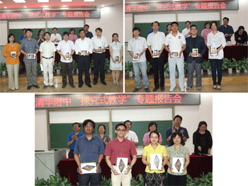 会上,历史组陈红老师、物理组俞家新老师、语文组徐慧琳老师结合自己学科特点分别就如何更好地实施“探究式教学”和大家交流。接下来,学校领导为参加北京市首届高中教师新课程基本功培训和展示活动的17位获奖教师颁奖。随后,一等奖获得者关劲松老师发言,和大家分享了参赛的感想和收获。方妍书记代表学校对参加北京市首届高中教师新课程基本功培训和展示活动的8位教练老师表示了衷心的感谢,并激励各位老师要坚定信念,永葆追求真理的热情,心怀无私的爱,追求超凡脱俗的气质。